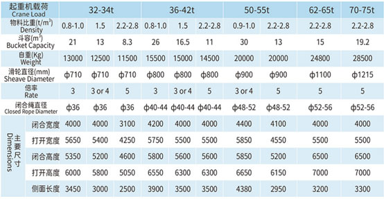 適用于門機(jī)、卸船機(jī)、行車上,抓取物料比重為0.6-3.2t/m3的散貨。